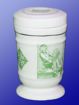 Porcelán dísztégely gyógynövényes, patikai jelenetekkel metszetes formában, arany motívumokkal. H-12 cm d- 6 cm
